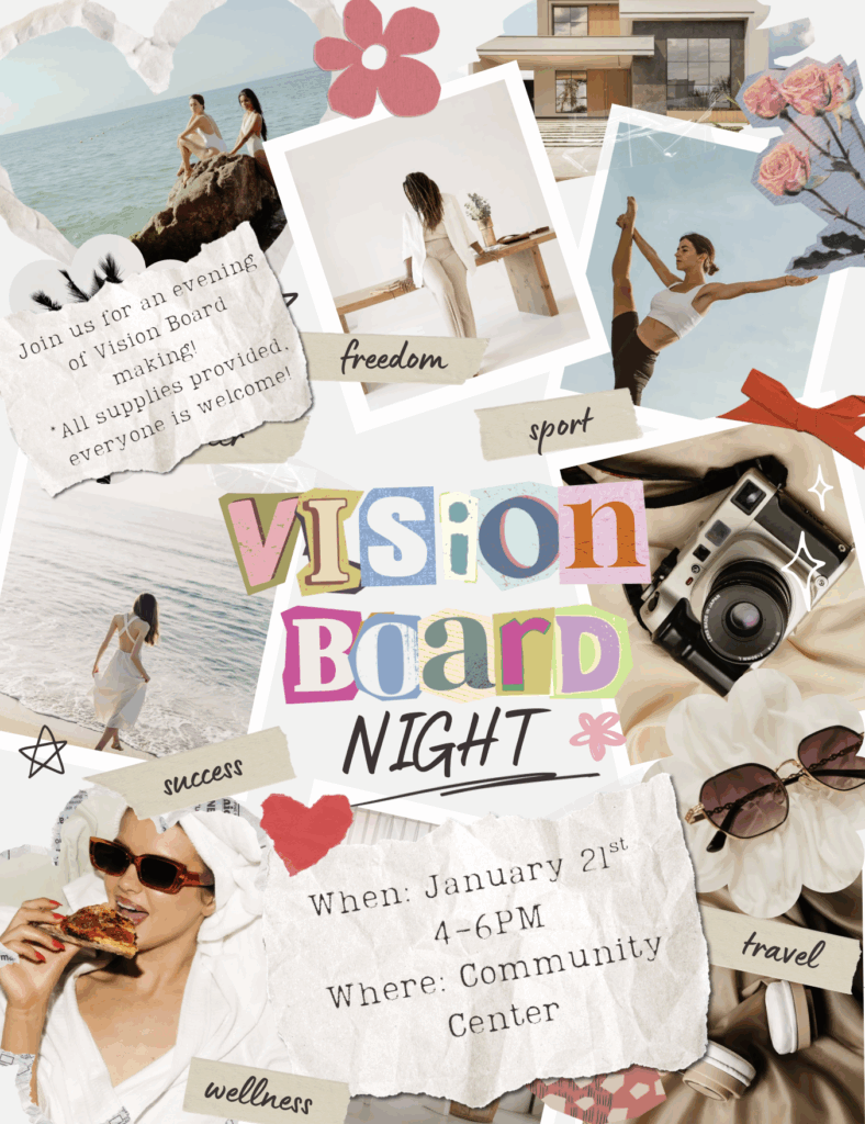 Join us for an evening of Vision Board Making in the Community Center from 4-6PM